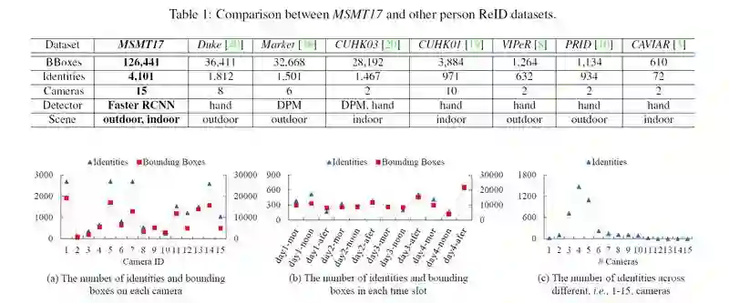另外本文还提出一个大型的 ReID 数据集 MSMT17,这个数据集包括多个时间段多个场景,包括室内和室外场景,是一个非常有挑战的数据集。