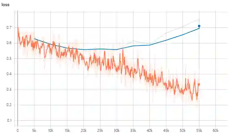 理论上,只要我们重写TFR源码中_GroupwiseRankingModel类的compute_logits方法,就能够让TFR支持正则化了。具体的代码上如何处理可以参考这里(如何解决TensorFlow Ranking框架中的正则化问题)。在加入正则化项后,跟上图同样的模型训练时就没有那么严重的过拟合现象了: