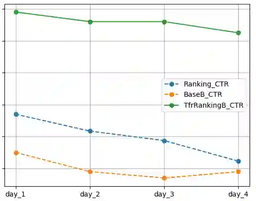 1. 在CTR和UCTR指标上,TfrRankingB显著优于Ranking,Ranking显著优于BaseB。