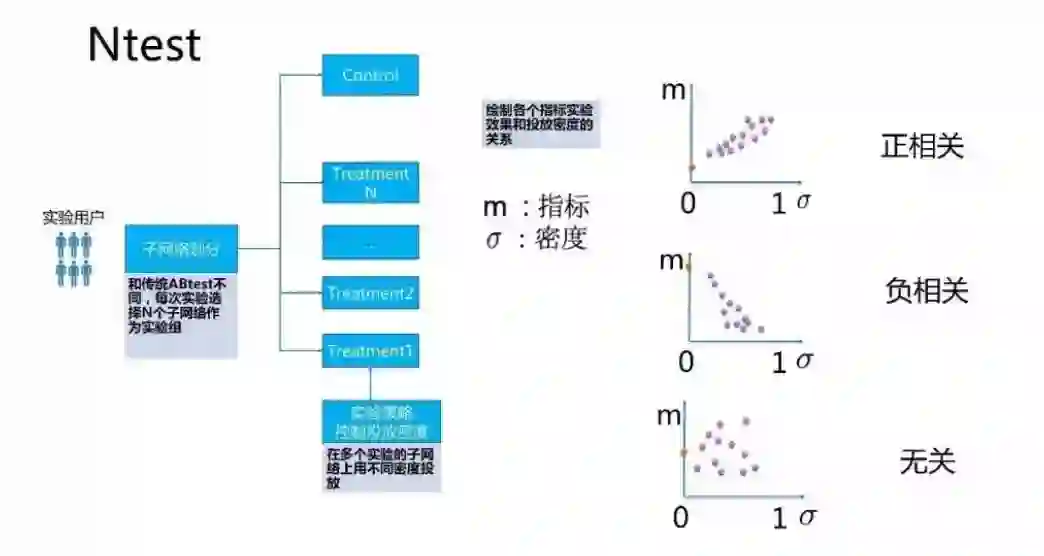我们针对社交网络的特点设计了一种改进的策略 Ntest,和传统 ABtest 不同,Ntest 不是以单个用户作为测试单位而是以几十人到几百人的子网络作为测试单元,每次实验选择 N 个子网络作为实验组,并在各个实验组上采用不同的密度投放实验策略。
