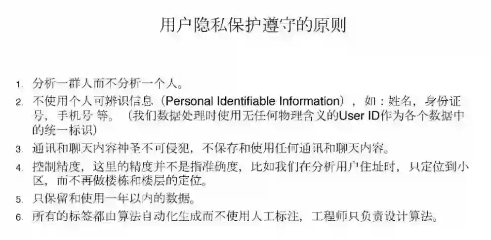 关于用户隐私保护的问题这是公司内在处理用户数据时遵守的原则,文字比较多我就不念了。