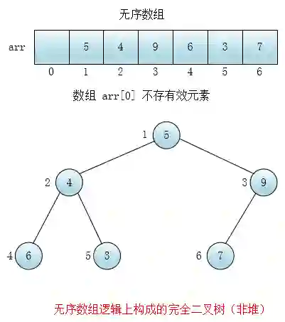 初始的时候,无序数组逻辑上可以看成一颗完全二叉树