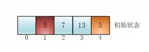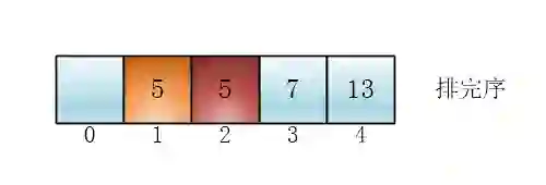 初始状态的5的先后顺序和排完序的顺序明显不一样了(黄色5跑到红色5左边去了),所以这个排序不是稳定的