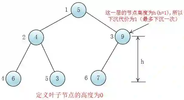 叶子节点高度为0,下沉代价为0