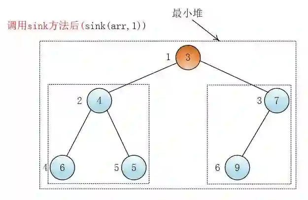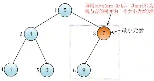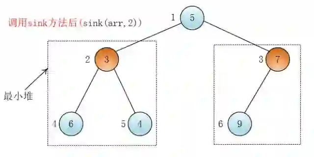 ③ 调整堆(sink(arr,1))