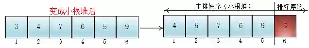 恩恩,对,怎么用堆这个数据结构来排好一个数组中的元素呢?