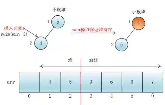 上浮(swim)操作会保持堆有序