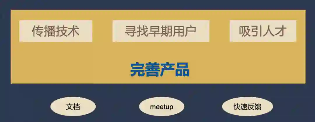 现在回看,我们认为有三个方面的基础工作是非常关键的:一是要把文档写好,这是基础中的基础,它能够让其他的开发者更好地理解产品;二是与开发者和早期用户建立直接面对面的交流机会,比如通过 meetup 更高效地沟通;三是快速反馈,对早期使用者提出的需求快速给出反馈,快速修复他们提出的问题。
