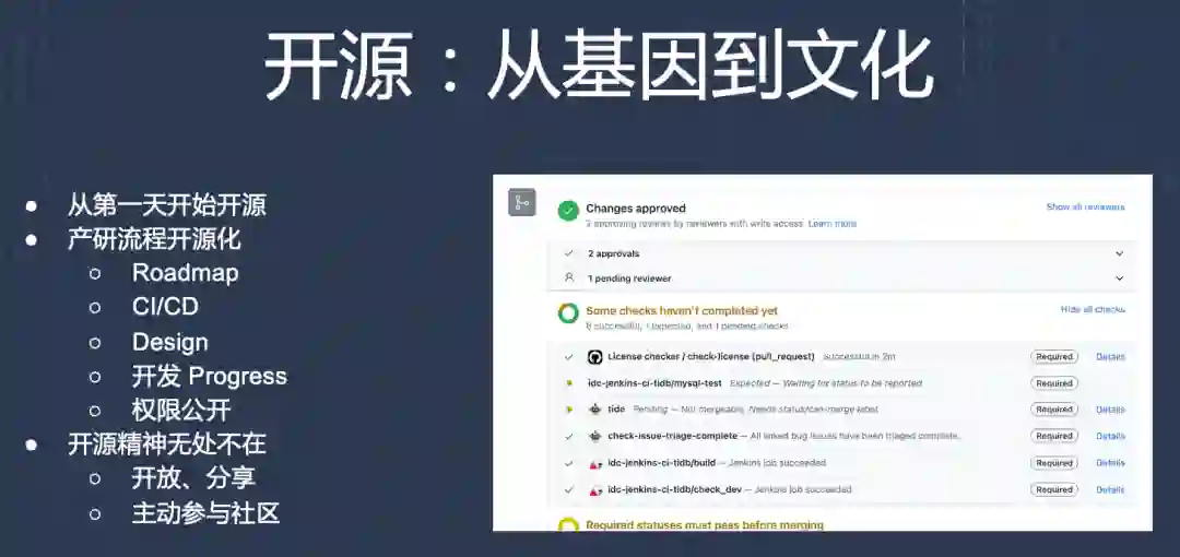 社区文化的建设绝非一朝一夕之功,需要长久的维护与共识。在 PingCAP 这个带着开源基因的公司,能够感受到很重视工程师文化、重视社区,研发流程开源化。也有很多热爱开源的小伙伴,他们考虑问题时不仅仅是一个 PingCAP 的员工,也会在一个社区成员的角度去思考和行动,正是这些点点滴滴的“小事”,构建起一个有料、有爱的社区。