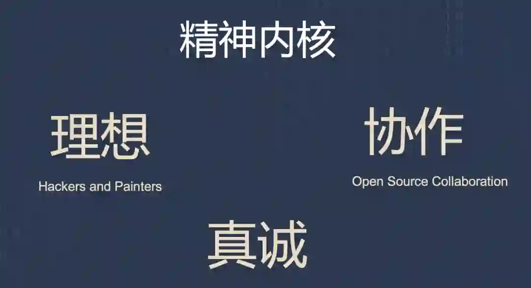 开源本身是个很丰富的概念,如果简化来看,我尝试总结为三个关键词:第一个是理想,是用技术进行创造的一种内生驱动因素;第二个是协作,特别是开源作为一种协作开发的方式,有其规则和理念,这些让素不相识的一群人能够一起创造;第三个是真诚,虽然看起来虽然普通,但也是一切的基础,开源社区的建设,是一个长期的信任关系的构建,离开真诚,信任无从谈起。