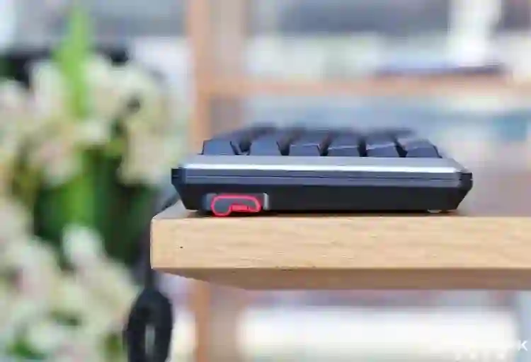 来看键盘背部。在 MX Board 5.0 底部上方,其做了三向导线槽。使用过程中,你可以根据自己的习惯,来选择合适的出线方向。