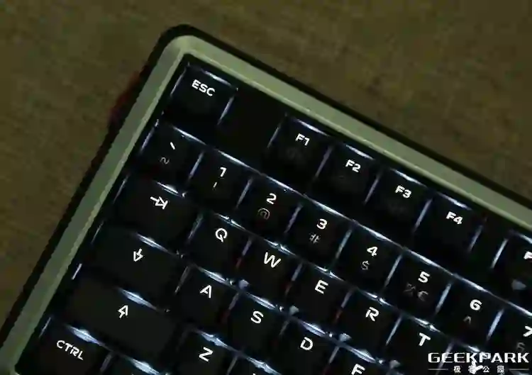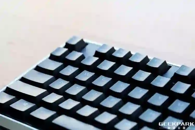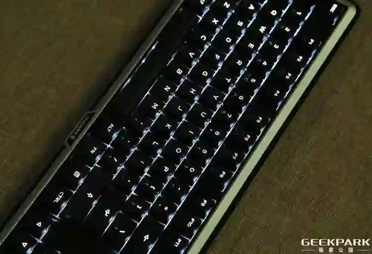 由于其采用了 PBT 双色注塑键帽,点亮之后灯光的均匀性表现令人满意。