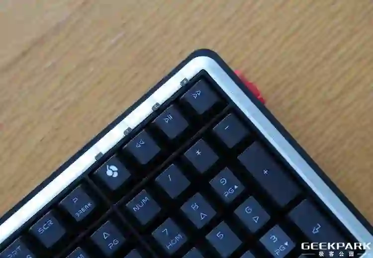 细节处理部分,MX Board 5.0 键盘区外围做了一圈磨砂铝合金装饰条来作为点缀。