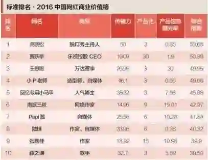▲在机构发布的“2016中国网红商业价值榜”中,薛之谦名列第10位。