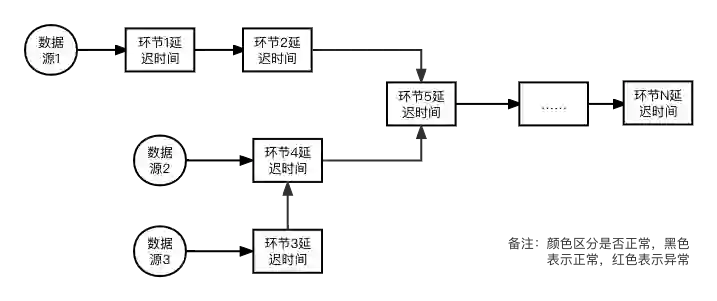 时效性统计:因为每个环节的输出包含自身以及上游各个环节的时间信息,可基于某个环节的输出数据,统计从数据源到当前环节端到端分环节、分数据源的时效性信息。