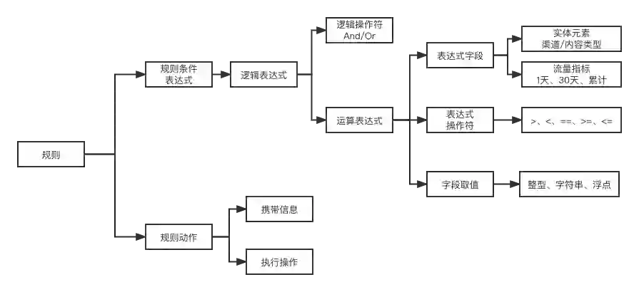 动态规则:整体流程和固定规则一致,但因为规则中阈值是动态的,需要进行设计以适配 Aviator:动态阈值作为实体元素放入表达式中(如 vv_1_day>=dynamic_value)中,将拉取的(内容 ID、规则 ID)的阈值拼接入输入信号中,字段为 dynamic_value,即可以实现动态规则的匹配。