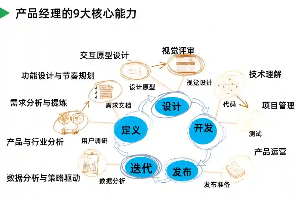 根据我们从市场上几百份招聘要求中提取整合的关键词,产品经理至少需要以下能力: