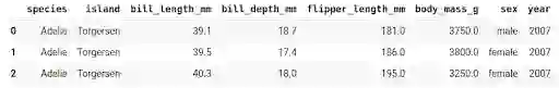 上图为 Palmer's Penguins 数据集中的三个示例