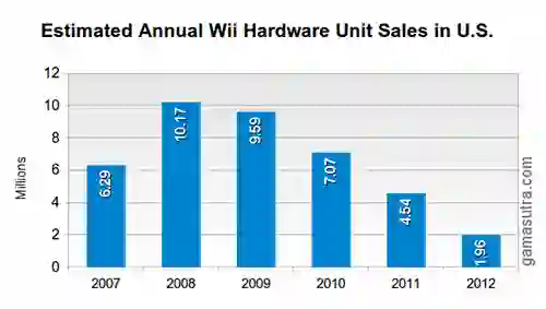 像是任天堂的Wii,由于本身机能薄弱,不支持720P和1080P高清视频输出,在其生涯中期(2009-2010)就出现了部分地区销量快速下滑的现象,要知道许多游戏主机在这个时间段还能通过降价促销等手段来提振一番销量呢。