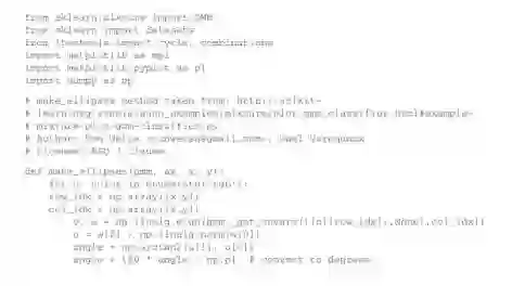 -有关make_ellipses ——make_ellipses来源于plot_gmm_classifier方法,作者为scikit-learn的Ron Weiss和Gael Varoquaz。根据协方差矩阵绘制的二维图形,可以找出方差最大和其次大的坐标方向,以及相对应的量级。然后使用这些坐标轴将相应的高斯分布的椭圆图形绘制出来。这些轴方向和量级分别被称为特征向量(eigenvectors)和特征值(eigenvalues)。
