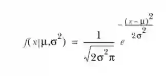 这个图形非常直观的展示了高斯分布的形态。接下来看下严格的高斯公式定义,高斯分布的概率密度函数公式如下: