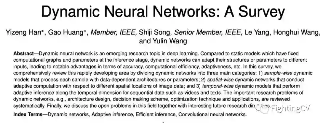 3)时序动态模型,对视频和文本等序列数据沿时间维度进行自适应推理。系统地回顾了动态网络的重要研究问题,如结构设计、决策方案、优化技术和应用。
