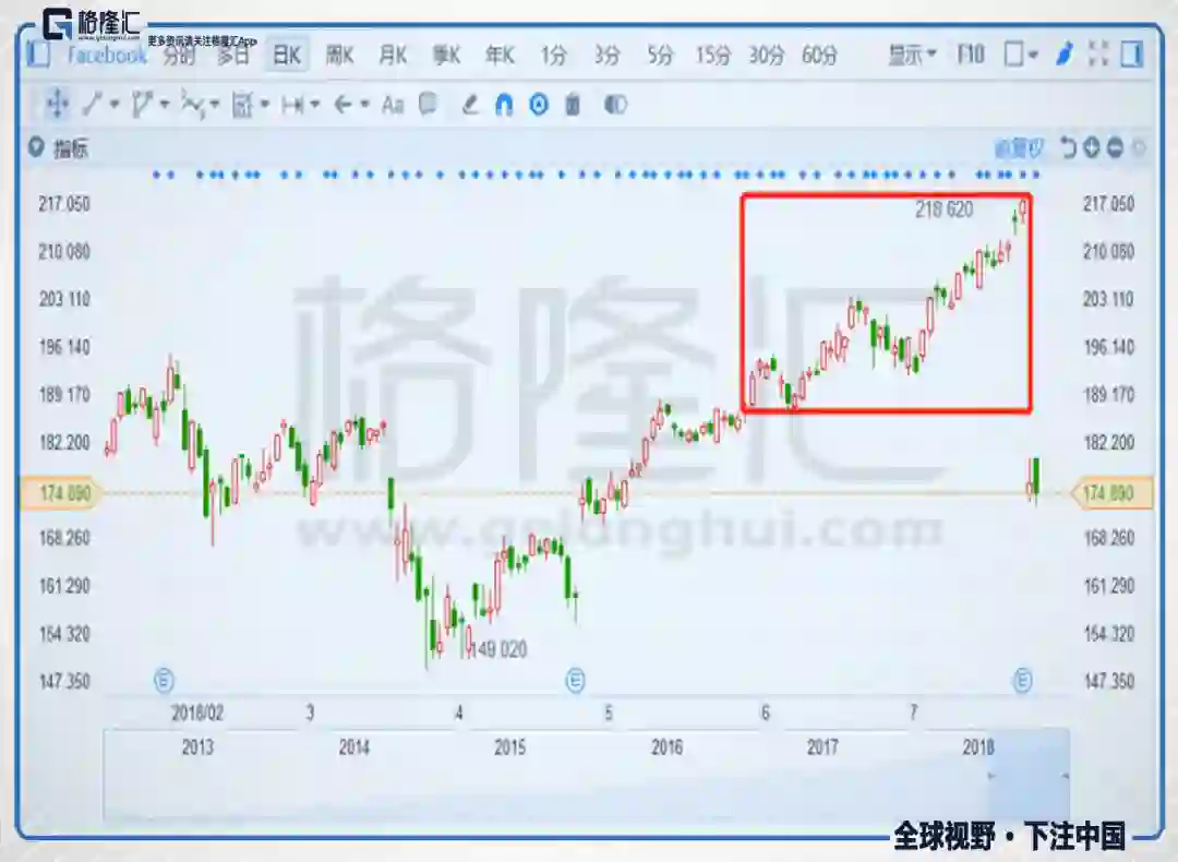 如果我们站在脸书股价的最高峰去注视股价最低谷,应该油然而生这样的想法,这都是同等智商的资金推动而成的。资本会把最高峰时的自己叫做最低谷时期自己的迭代,像是自我安慰地说自己在最低谷进行“基层锻炼”。