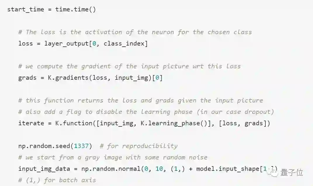 对于具体的实现我们需要定义一个损失函数,该损失函数将用于最大化某个指定卷积核的激活值。以该损失函数作为优化目标,我们可以了解到底什么样的图片才可以使得这个卷积核取得更好的激活值。