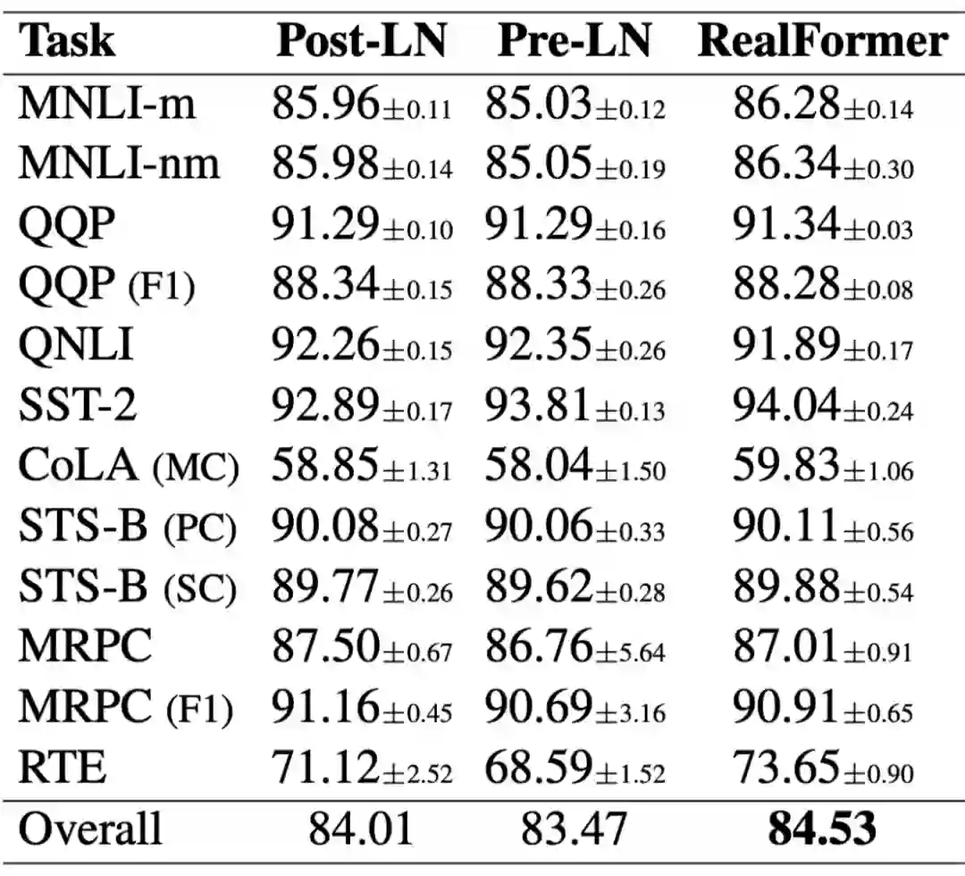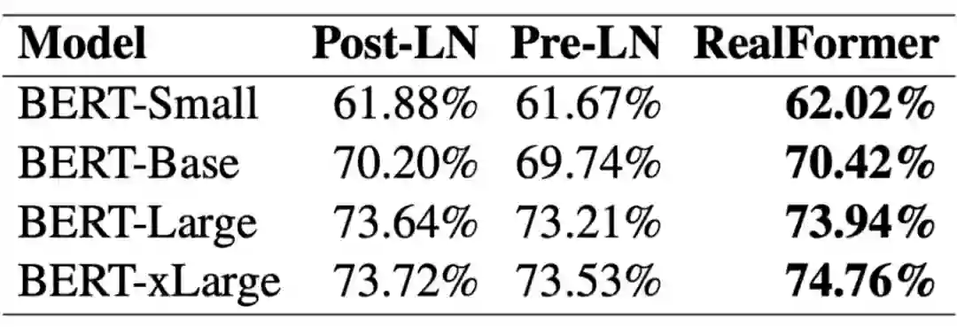 读者可能会反驳,既然 PreLN 存在问题,那 RealFormer 的