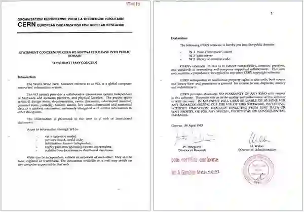 1993年4月30日,CERN正式宣布Web技术向所有人开放(图片来自https://cds.cern.ch/record/1164399)