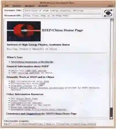 Web在中国的发展也与粒子物理息息相关。1991年中美高能物理合作会谈正式提出建立一条从位于北京的中科院高能物理所(IHEP)至位于美国加州斯坦福直线加速器中心(SLAC)的计算机联网专线(64K速率)。