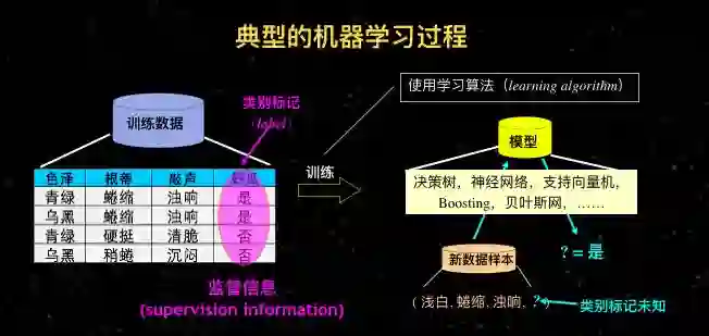 关于监督信息。对于一个机器来说,我们拿到很多数据之后,经过训练得到模型,这个模型能够发挥作用,能够做精确预测。这里面很重要的是我们需要有很多数据,而且这些数据需要有监督信息。