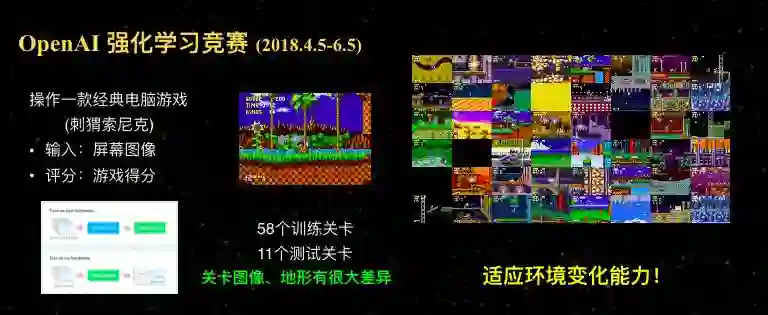 而这个比赛和以前不太一样的是,它给我们的训练场景和测试场景是完全不一样的,训练场景58个关卡,测试11个关卡,环境变化非常明显,最重要的是考验我们怎么去适应环境变化的能力。