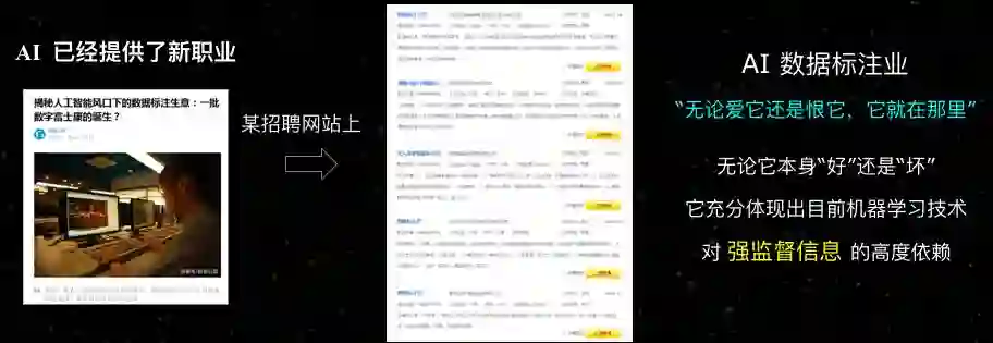 样本需要标记,我们现在大量的人力物力都花在这件事上,比如前段时间有讨论人工智能会不会使得一些职业消亡。是不是消亡我们没看到,但是我们已经看到一个新的职业,就是数据标注已经变成一个产业。这件事情不管它好还是不好,反正它就在那儿,至少告诉我们机器学习技术现在对强监督信息是高度依赖的。