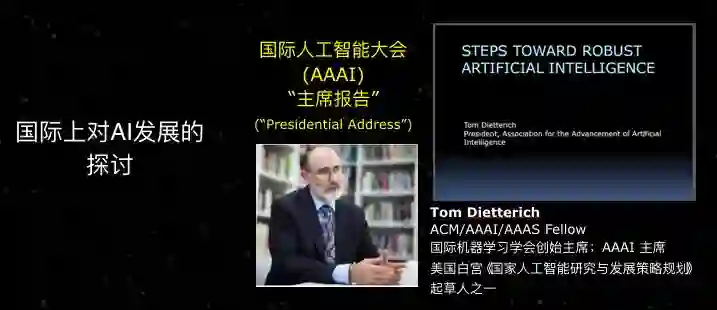 在国际人工智能大会(AAAI)Tom Dietterich教授做了一个主席报告,叫“通往鲁棒的人工智能”,特别提到现在人工智能技术取得巨大发展,越来越多地面临高风险应用。