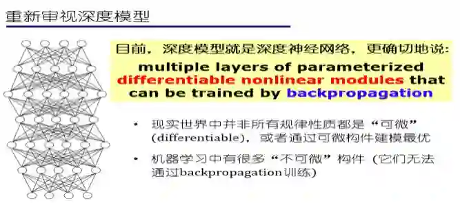 如果我们重新审视深度模型自身的话,会发现今天我们所谈的深度模型其实都是指深度神经网络,而用更学术的话来说,这是由多层参数化可微的非线性模块搭建起来的模型,而它本身能够用BP算法去训练。