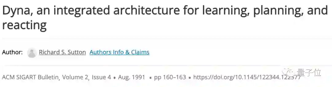 在LeCun的论文中,关于这部分的引用是来自论文“Dyna, an integrated architecture for learning, planning, and reacting”,发表于1991年8月。