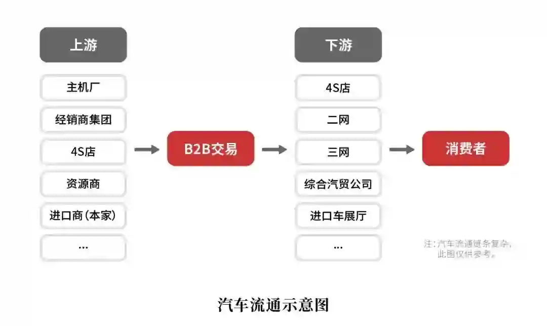 在汽车流通链条上,涉及到的利益相关方有主机厂、经销商集团、4S店、资源方、二网、三网、物流承运商、金融机构等。在B2B交易中,卖好车主要提供服务包括车源、仓储、物流、金融四项。每一个细分环节、每一项细分服务都有可能让外行人跌得头破血流。