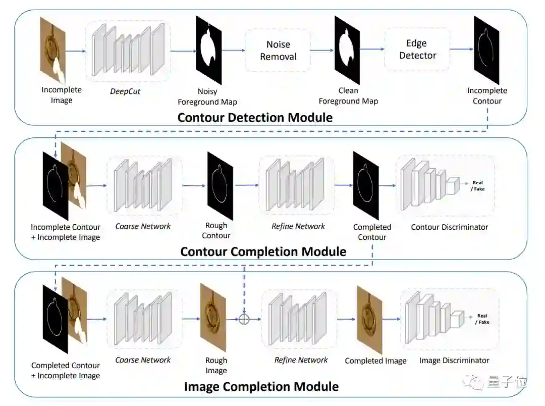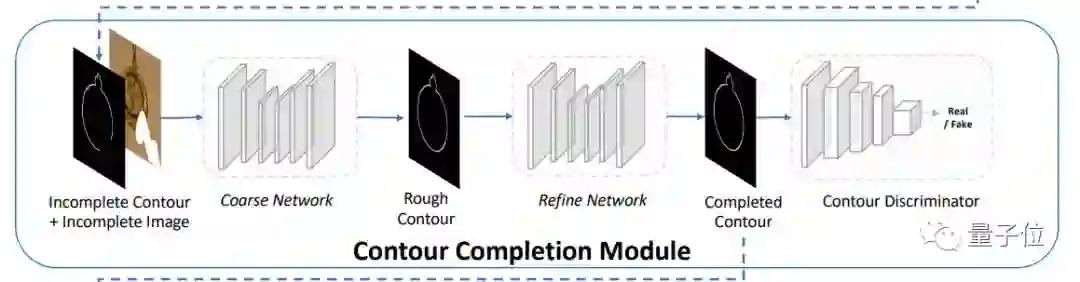 然后轮廓补全模块登场,来预测完整的图像前景轮廓应该是什么样子。