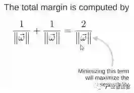 所以得到total margin的表达式如下,目标是最大化这个margin,就需要最小化分母,于是变成了一个优化问题: