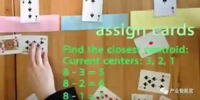 先要将一组数据,分为三类,粉色数值大,黄色数值小 。最开始先初始化,这里面选了最简单的 3,2,1 作为各类的初始值 。剩下的数据里,每个都与三个初始值计算距离,然后归类到离它最近的初始值所在类别。