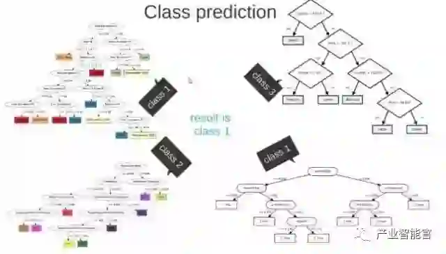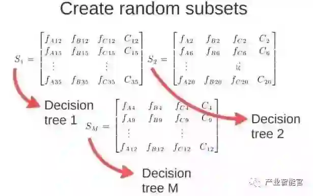 这M个子集得到 M 个决策树:将新数据投入到这M个树中,得到M个分类结果,计数看预测成哪一类的数目最多,就将此类别作为最后的预测结果。