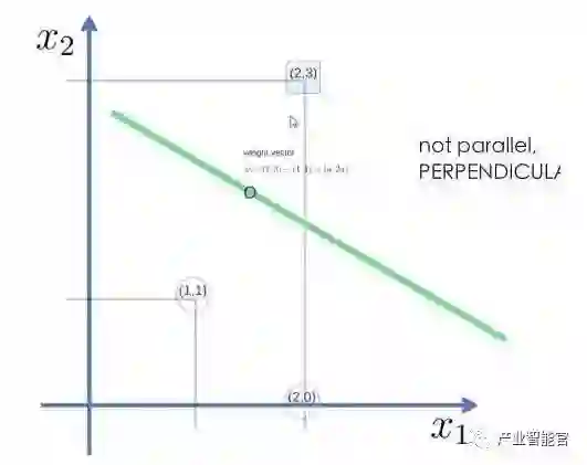 举个例子,三个点,找到最优的超平面,定义了 weight vector=(2,3)-(1,1):