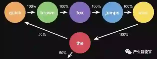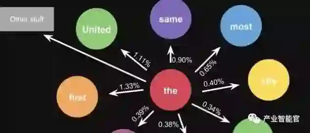 这是一句话计算出来的概率,当你用大量文本去做统计的时候,会得到更大的状态转移矩阵,例如the后面可以连接的单词,及相应的概率。
