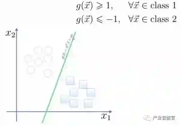 将这个超平面表示成一个线性方程,在线上方的一类,都大于等于1,另一类小于等于-1: