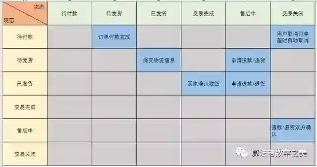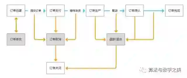 状态机是管理订单状态逻辑的工具。状态机可归纳为3个要素,即现态、动作、次态。