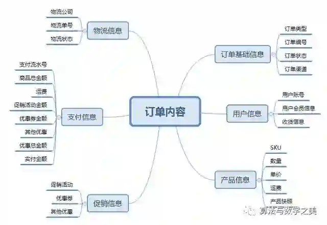 以一个通用B2C商城的订单为例,梳理其包含的信息如下: