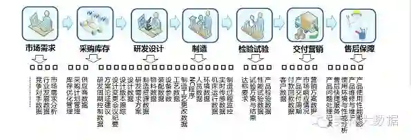 工业大数据是制造型企业创新转型的驱动力和催化剂,随着三维设计、3D打印、机器人技术等在制造型企业广泛应用。工业大数据广泛分布在产品设计、制造、物流、服役等各环节,具体如下: