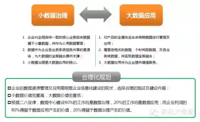 制造型企业在信息化的每个发展阶段都会有大量的数据处理要求并且会因为大量的业务活动产生各式的数据各样,只要采用数据驱动业务的方式进行业务活动就是大数据,大数据是企业信息化发展到当前阶段的必然结果。所以工业大数据的利用不仅仅是信息化基础设施建设,更重要的是采用数据思维来管理和创新业务,大数据应是管理创新的手段,优化全业务流程和提供业务管理工具。所以制造型企业大数据应用的难点是打通企业数据采集、集成、管理、分析的产业链条,帮助业务人员养成使用数据的习惯。在这方面互联网企业走在前面,值得制造型企业学习。
