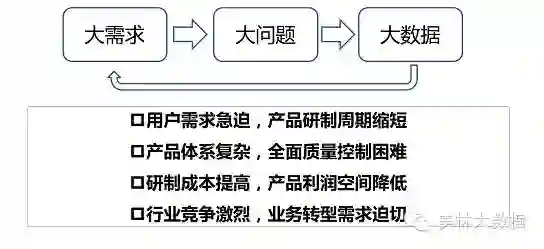 制造型企业面临着客户需求个性化,产品上市时间短,研制成本提高等巨大挑战。这种挑战本身更多体现在企业与企业之间如何以更低的成本、更高的质量、更快的速度满足客户多样的需求。所以传统方式很难解决大数据时代的企业问题,需要有创新的手段来解决。目前越来越多的企业通过大数据来驱动业务创新,提升产品质量、降低研制成本、加快上市周期。